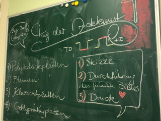 4. Klasse der Parkschule Weimar probiert sich zum Tag der Druckunst an verschiedenen Drucktechniken aus.